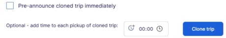 When cloning a trip, the system automatically assigns a later time to the new trip. As a result, the date may shift to the next day. However, it is possible to manually adjust the time in the cloned trip so it can, for example, be scheduled just half an hour after the original trip. The date and time can therefore be overwritten, but by default the system moves them forward.
