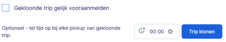 Bij het clonen van een trip vult het systeem automatisch een latere tijd in voor de nieuwe rit. Dit kan ertoe leiden dat de datum verspringt naar de volgende dag. Het is echter mogelijk om de tijd handmatig aan te passen bij de gekloonde trip, zodat deze bijvoorbeeld een half uur na de oorspronkelijke rit kan worden aangemeld. De datum en tijd kunnen dus worden overschreven, maar worden standaard door het systeem vooruitgezet.